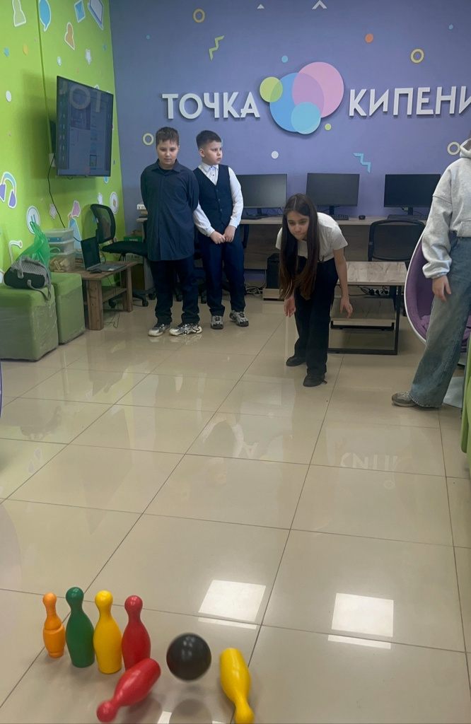Далее разделившись на команды, поиграли в разные игры: "Боулинг", "Кольцеброс", "Удержи равновесие" и другие игры.
